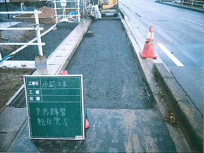 道路の縁石を車輛が侵入できるよう、乗り入れ用のブロックに交換